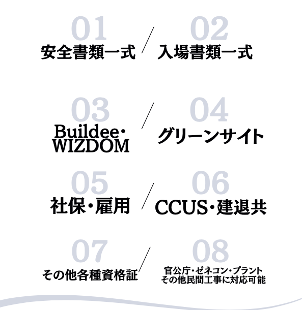 これらの書類は、現場作業の安全性と効率を高め、法令遵守を保証するために不可欠です。どんなご要望にも迅速かつ適切に対応することをお約束します。